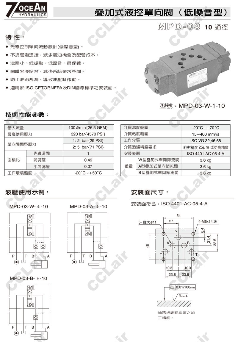 型號: MPD-03-W,MPD-03-A,MPD-03-B,MPD-03-A-2-10,MPD-03-B-1-10,7OCEAN七洋疊加式液控單向閥