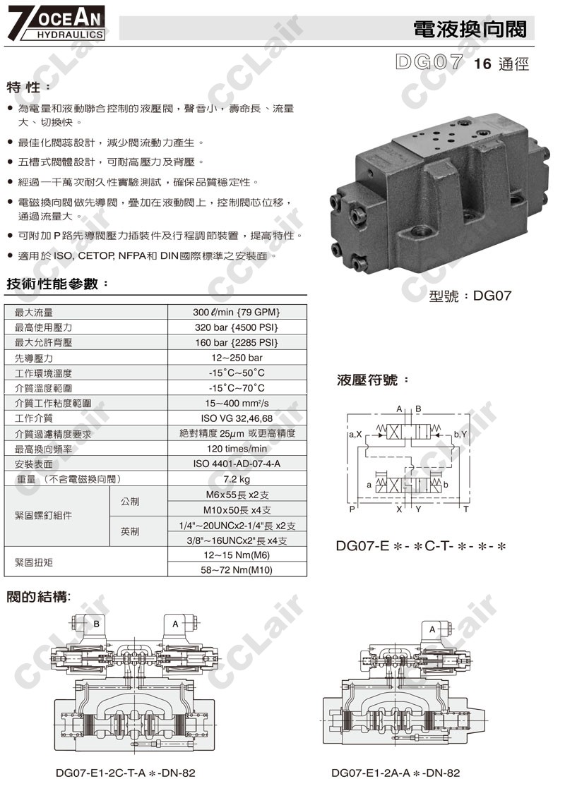 DG07-E1,DG07-E2,DG07-E1-11BL-ET-A110-DN-82,DG07-E2-11BL-E-A120-DN-82,7OCEAN七洋電液換向閥