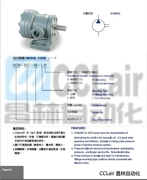 VCM-50T-7-FR,VCM-50T-12-FR,VCM-50T-17-FR,VCM-50T-23-FR,定量葉片泵
