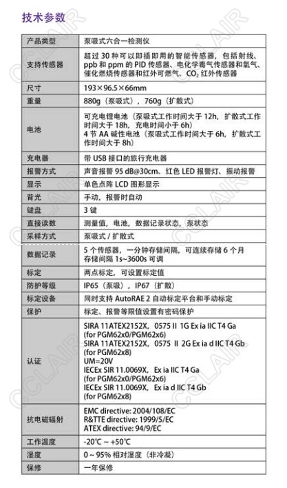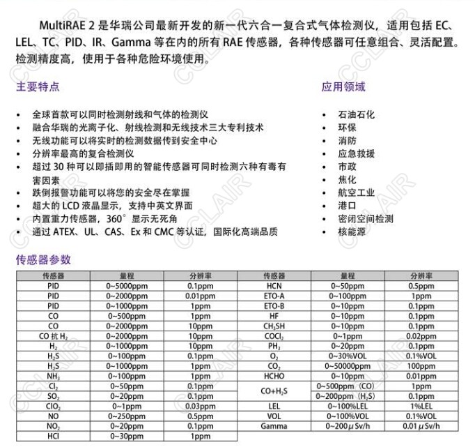 詳細(xì)信息 PGM-62X8,MultiRAE2 六合一有毒有害氣體檢測(cè)儀