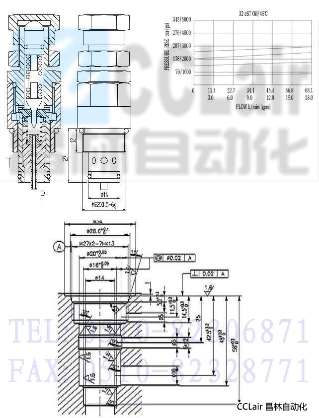 當(dāng)P口壓力未達到彈簧設(shè)定壓力的90%時,P到T不通超過90%并繼續(xù)升高時,P到T開始溢流,直到彈簧的最高設(shè)定壓力。
