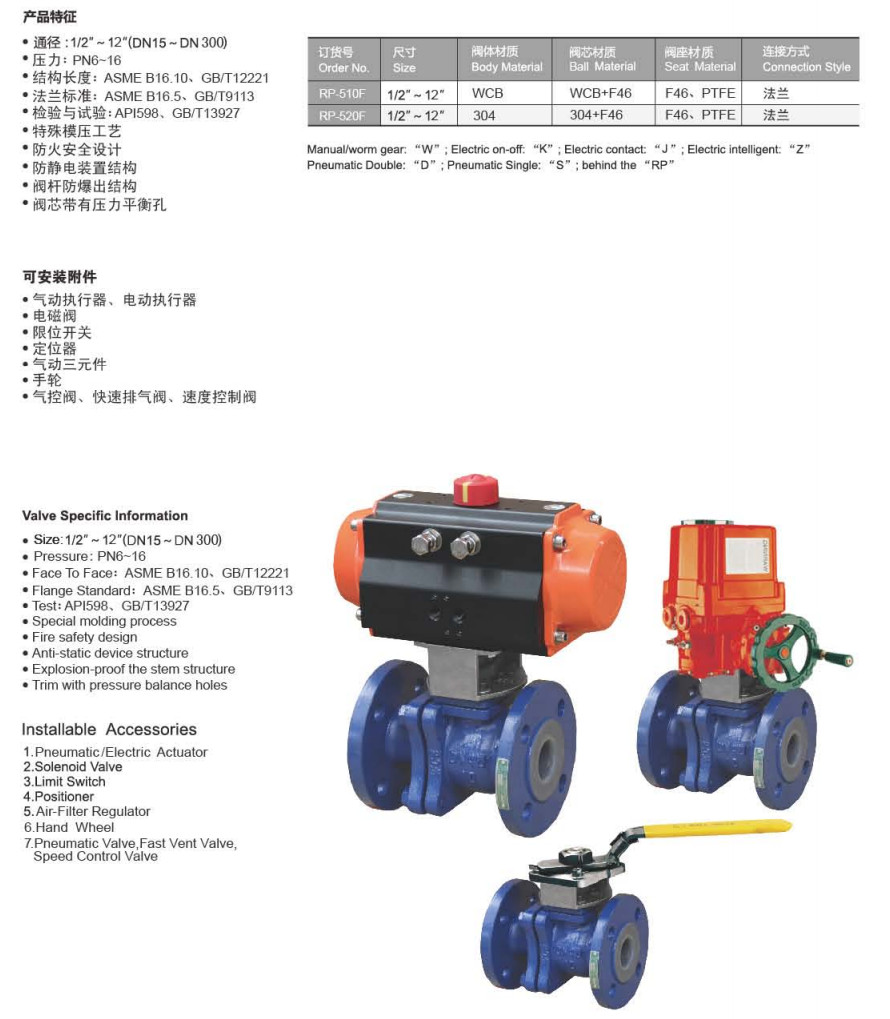 RP-510F-DN15,RP-510F-DN125,RP-520F-DN25,RP-520F-DN200,RP-510F-DN20,RP-510F-DN100,RP-520F-DN15,RP-520F-DN100,襯氟球閥