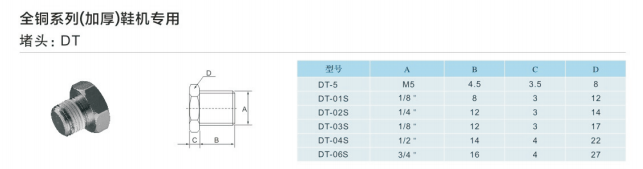 SMC型全銅系列(加厚)鞋機(jī)專(zhuān)用DT-M5,DT-1/8,DT-1/4,DT-3/8,DT-1/2,DT-3/4,DT-1寸,