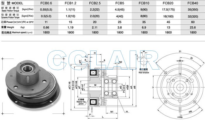 詳細(xì)信息 FCB0.6,FCB1.2,FCB2.5,FCB5,FCB10,FCB20,FCB40,電磁式離合器