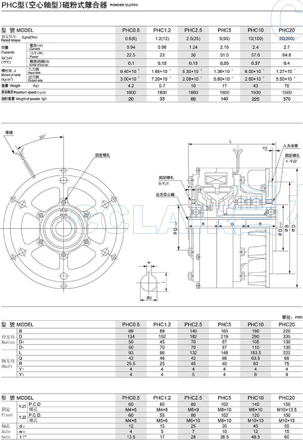 PHC0.6,PHC1.2,PHC2.5,PHC5,PHC10,PHC20,磁粉離合器