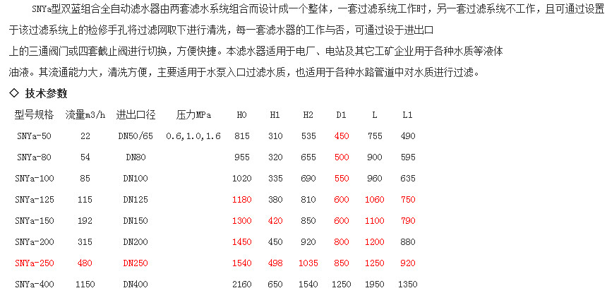 詳細(xì)信息 SNYa-50,SNYa-80,SNYa-100,SNYa-125,SNYa-150,SNYa-200,SNYa-250,SNYa-400,雙藍(lán)組合全自動(dòng)濾水器