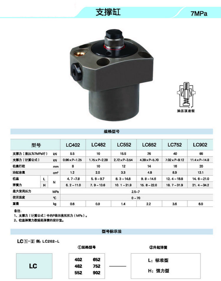 LC402,LC482,LC552,LC652,LC752,LC902,低壓支撐缸