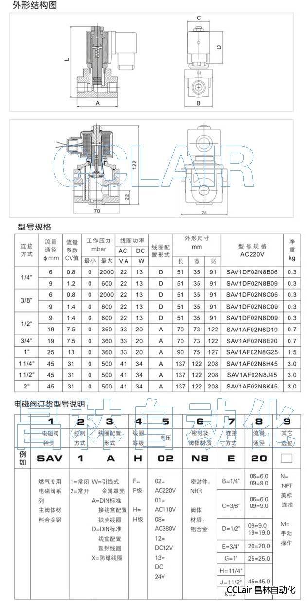 詳細信息 SAV1DF02N8B06,SAV1DF02N8B09,直動式燃氣電磁閥(常閉型)
