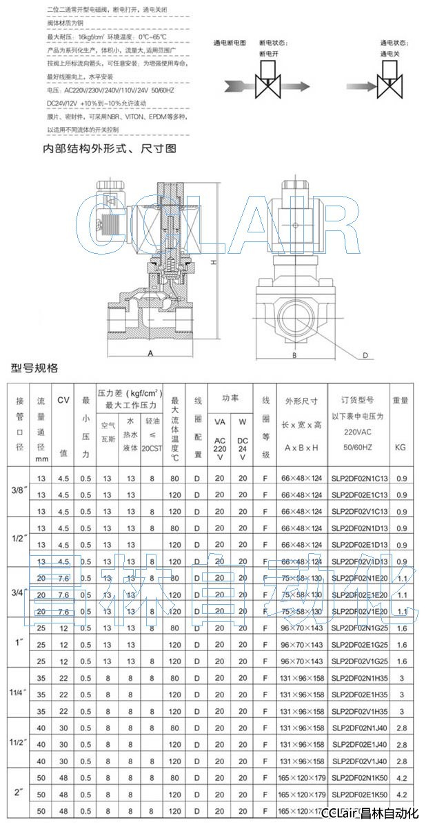 SLP2DF02N1C13,SLP2DF02E1C13,銅二位二通電磁閥(常開型)