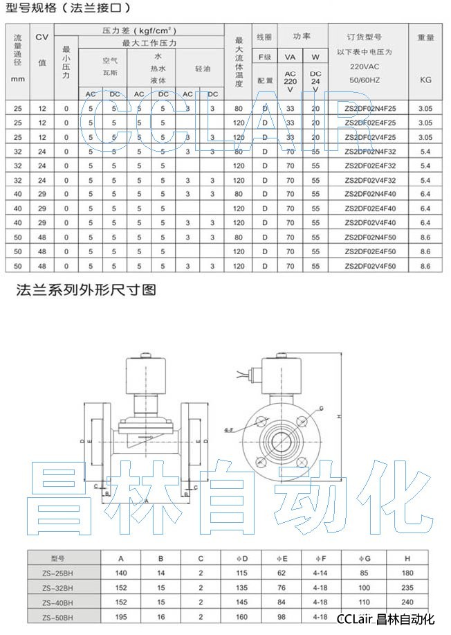 ZS-25BH,ZS-32BH,ZS-40BH,ZS-50BH,不銹鋼法蘭二位二通零壓差電磁閥(常開(kāi)型)