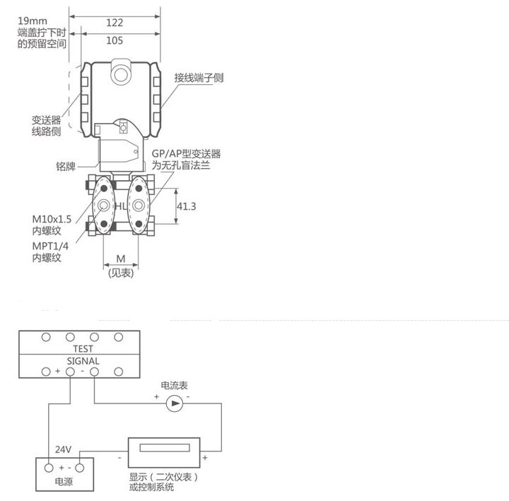 輸出信號: (4~20)mA(二/三線制)、帶Hart協(xié)議