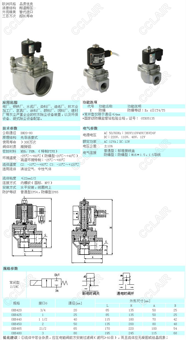 OK6420,OK6425,OK6440,OK6450,OK6465,OK6480,OK64,活塞式電磁脈沖閥(含防爆型)