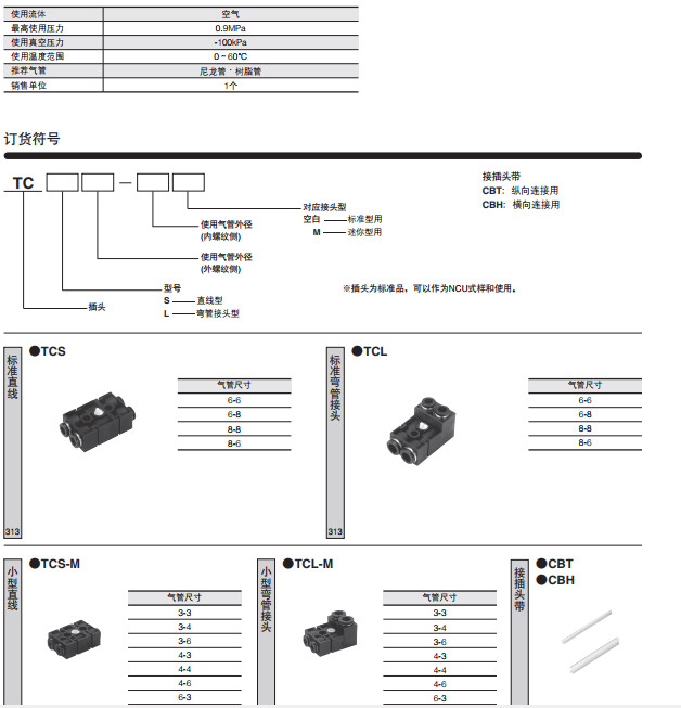 TCS6-6,TSC6-8,TSC8-6,TSC8-8,TCL6-6,TCL6-8,TCL8-6,TCL8-8,TCS3-3M,插頭標準型/迷你型