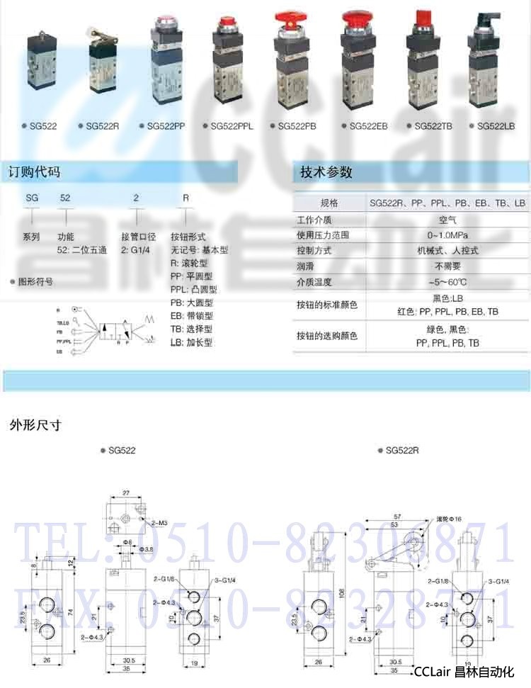 SG522,SG522R,SG522PP,SG522PPL,SG522PB,SG522TB,SG522EB,SG522LB,二位五通手控閥/機控閥
