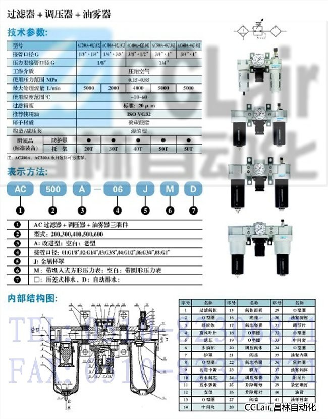 AC500A-06J,AC500A-08J,AC600A-06J,AC600A-08J,三聯(lián)件,