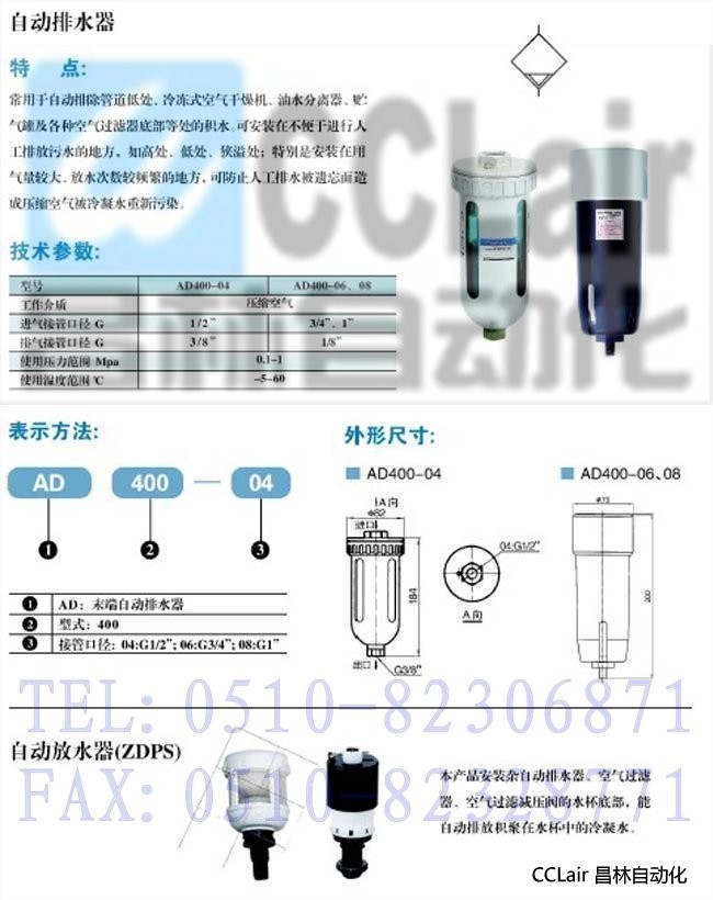 AD400-04,AD400-06,AD400-08,ZDPS,自動排水器,