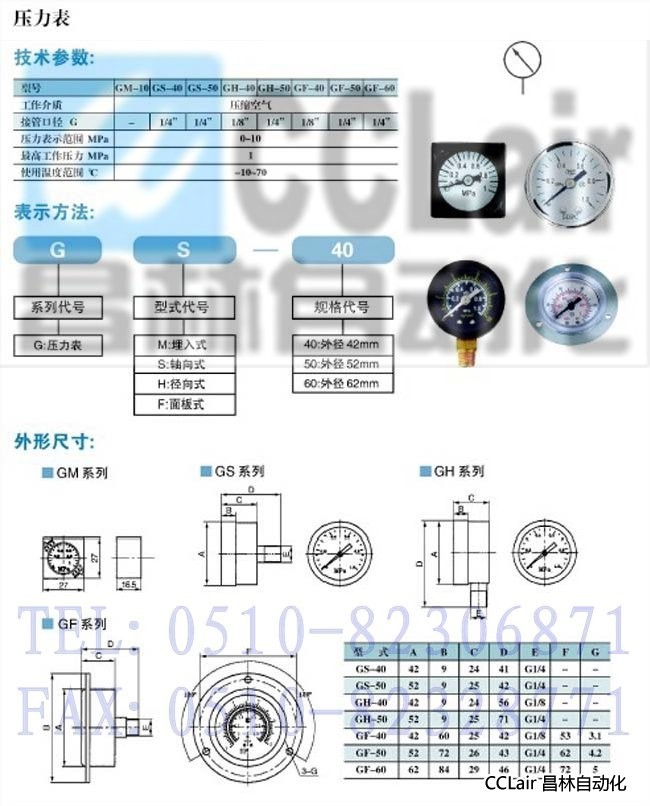GF-40,GF-50,GF-60,壓力表