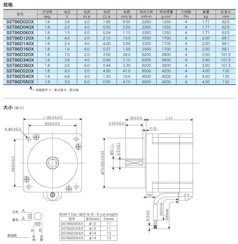 詳細(xì)信息 SST86D020X,SST86D040X,SST86D060X,SST86D120X,SST86D140X,兩相混合步進(jìn)馬達(dá)