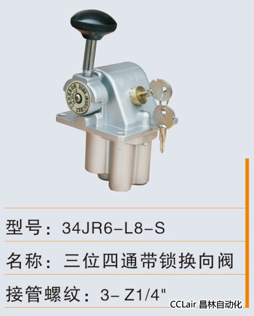 » 34JR6-L8-S,三位四通帶鎖換向閥