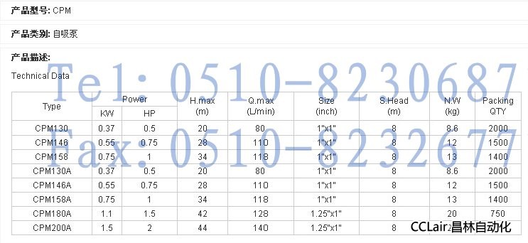 CPM146A,CPM158A,CPM180A,CPM200A,離心泵