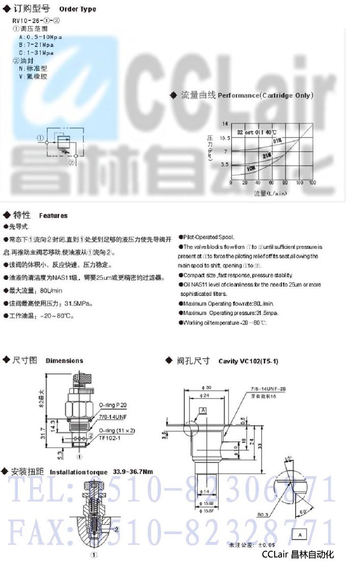 RV10-26-A-N,RV10-26-A-V,RV10-26-B-N,先導式溢流閥