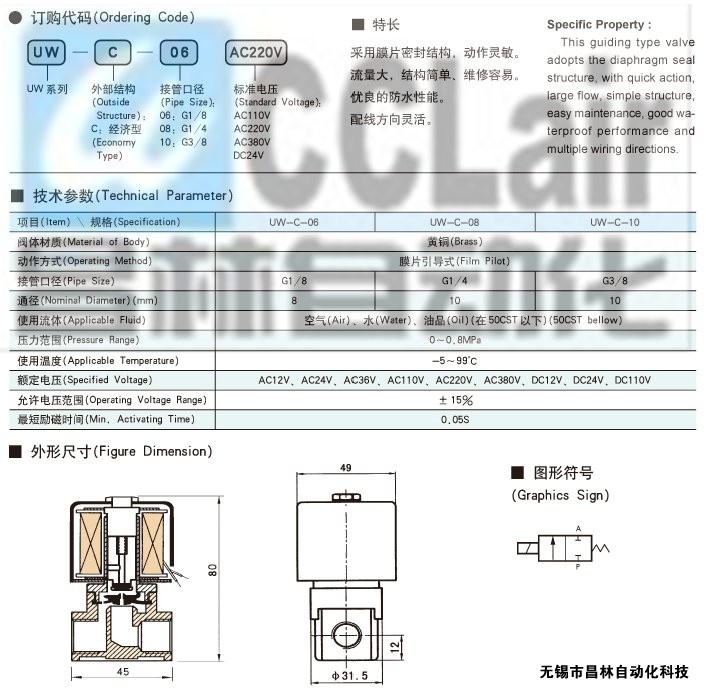 詳細信息 UW-C-06,UW-C-08,UW-C-10,電磁閥
