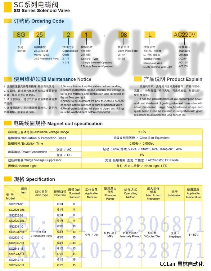 詳細(xì)信息 SG2521-08,SG2521-08L,SG2522-08,SG2522-08L,SG2531-10,SG2531-10L,二位五通電磁閥