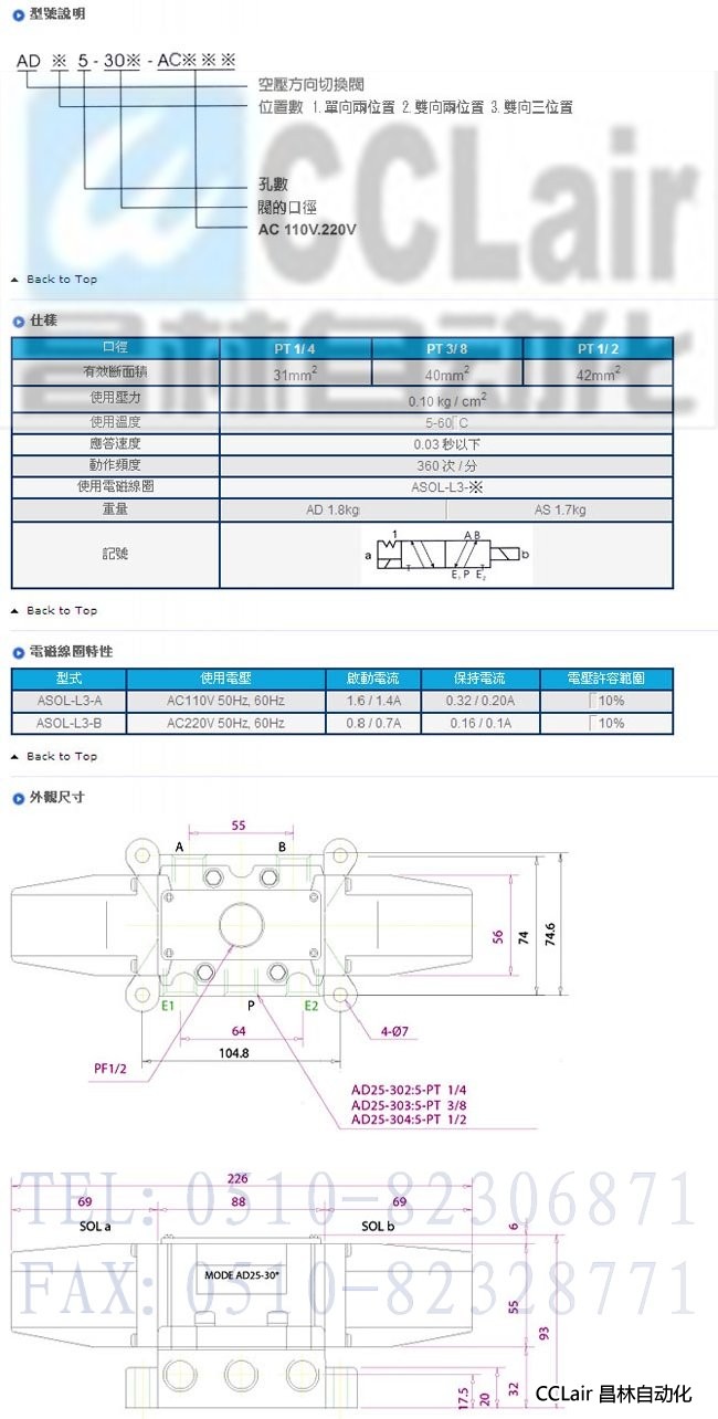 AD25-302, AS25-302,AD25-303, AS25-303,空壓用直動式電磁閥