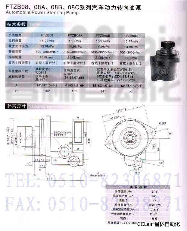 FTZB08,FTZB08A,FTZB08B,FTZB08C,汽車動力轉向油泵