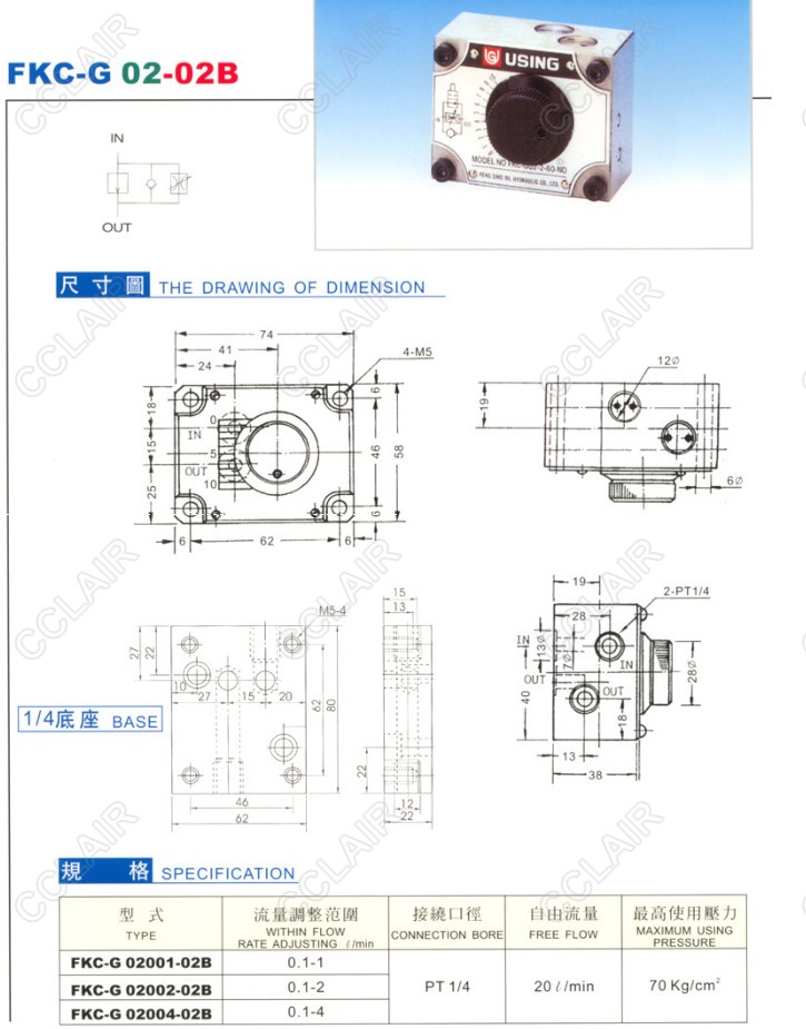 詳細信息 FKC-G02001-02B,FKC-G02002-02B,FKC-G02004-02B,流量控制閥