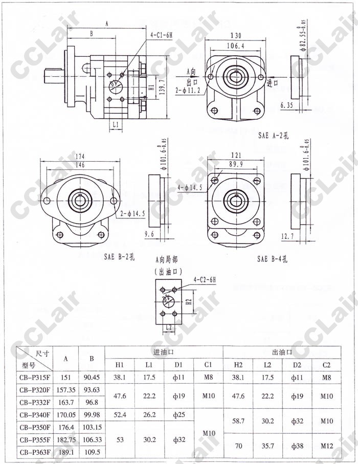 CB-P315F,CB-P320F,CB-P332F,CB-P340F,CB-P350F,CB-P355F,CB-P363F,齒輪泵,YUCIYUKEN |