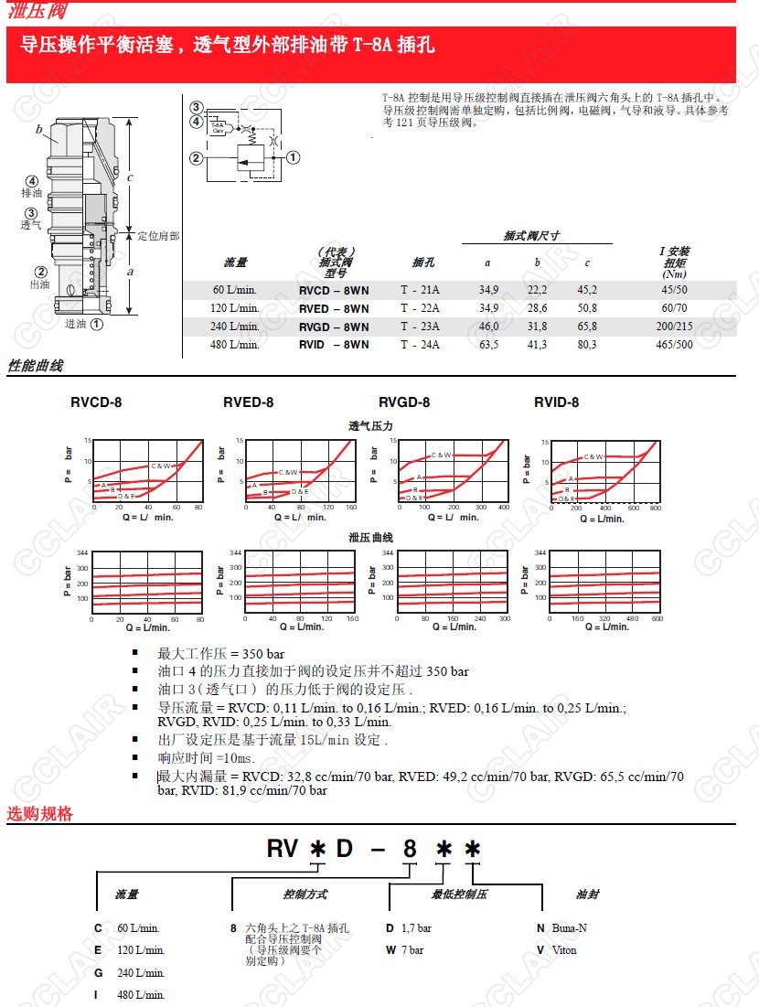RVCD-8WN,RVED-8WN,RVGD-8WN,RVID-8WN,RVCD-8DN,RVED-8DN,RVGD-8DN,RVID-8DN,導(dǎo)壓操作平衡活塞,透氣型外部排油帶T-8A插孔泄壓閥