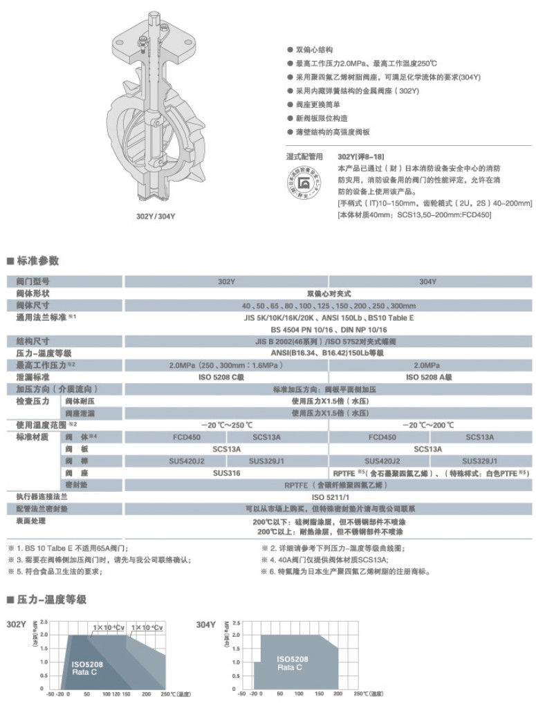 詳細(xì)信息 302Y-DN40,302Y-DN50,302Y-DN65,304Y-DN65,304Y-DN80,TOMOE雙偏心對(duì)夾式蝶閥