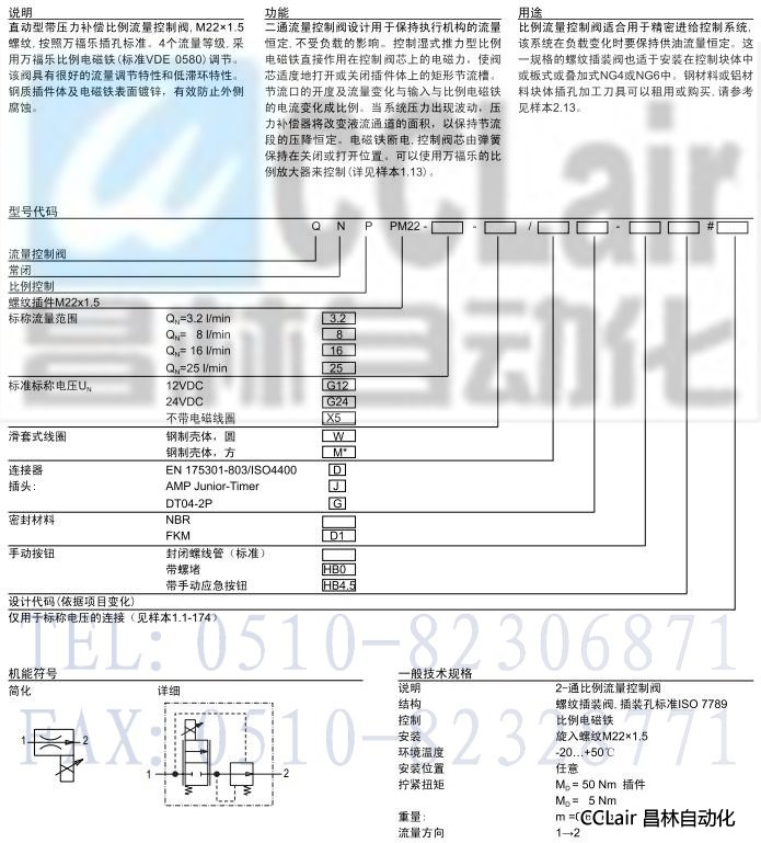 產(chǎn)品: 瀏覽次數(shù):784QNPPM22,插裝式比例 2-通流量控制閥(滑套式線圈)