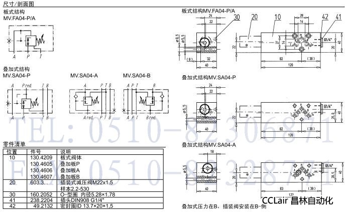 MV.FA04-P/A,MV.SA04-P,MV.SA04-A,MV.SA04-B,先導式減壓閥板式和疊加式結構