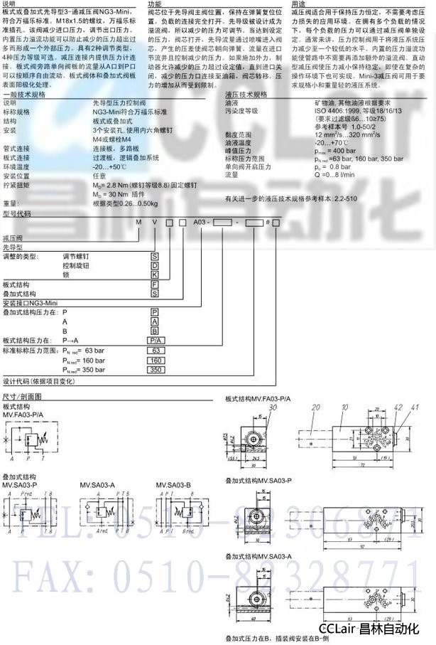 MV.FA03-P/A,MV.SA03-P,MV.SA03-A,MV.SA03-B,先導(dǎo)式減壓閥板式和疊加式結(jié)構(gòu)