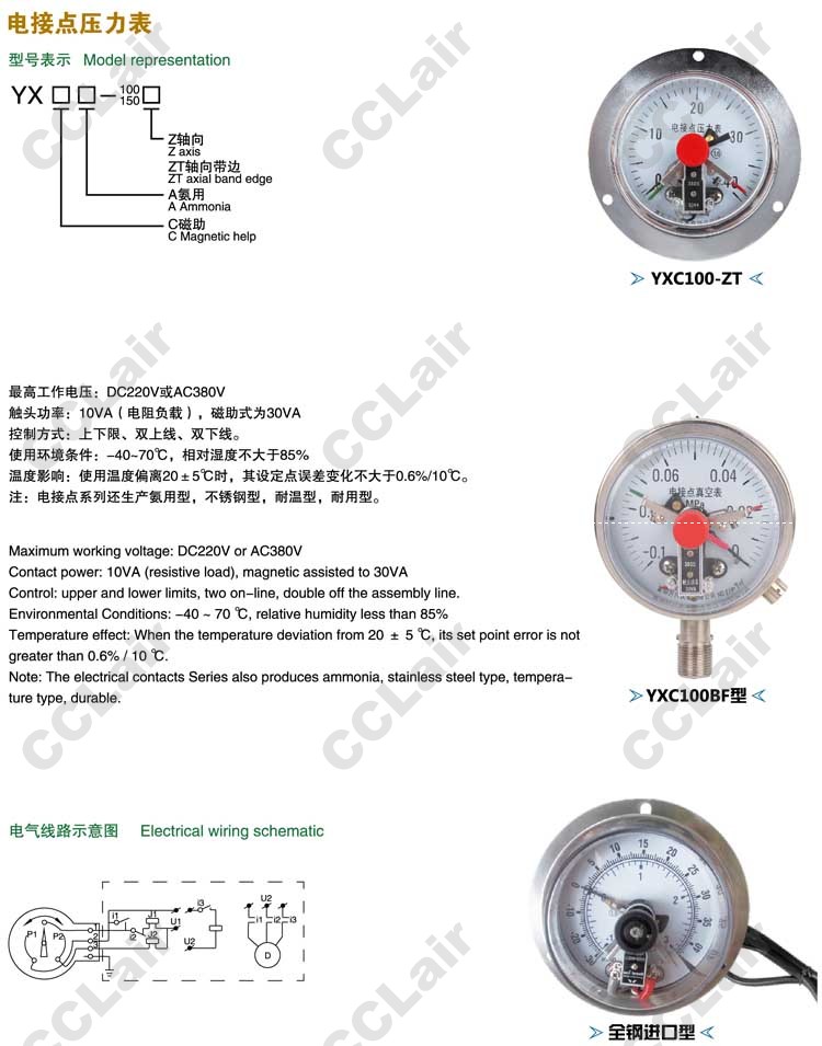 YXC100-ZT,YXC100-Z,YXCA100-ZT,YXCA100-Z,YXCA150-ZT,YXCA150-Z,電接點(diǎn)壓力表,無錫昌林