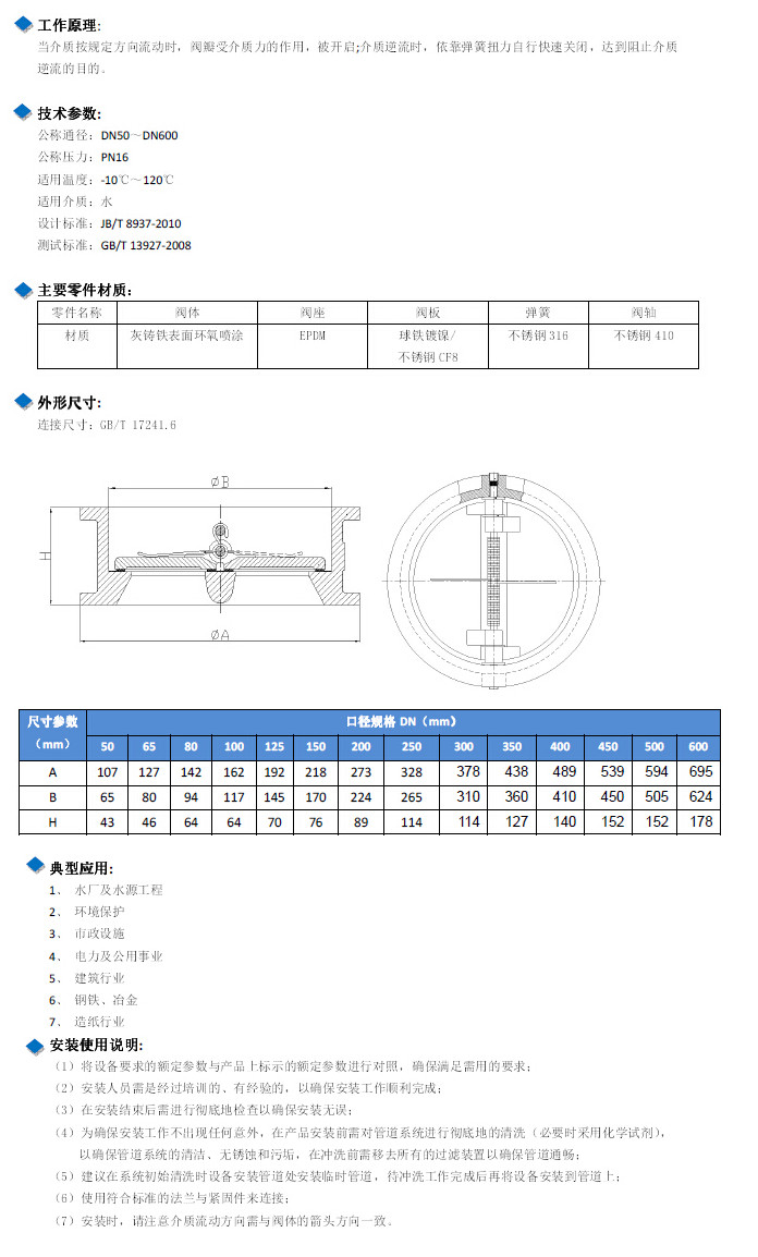 W-H77X-16Z-DN50,W-H77X-16Z-DN65,W-H77X-16Z-DN80,W-H77X-16Z-DN100,對(duì)夾式蝶型止回閥
