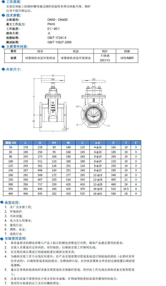 W-405-DN50,W-405-DN65,W-405-DN80,W-405-DN100,W-405-DN125,暗桿手輪彈性座封閘閥