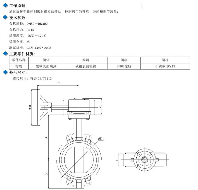 W-D37A1X-DN50,W-D37A1X-DN65,W-D37A1X-DN80,W-D37A1X-DN100,對(duì)夾蝸輪中線軟密封蝶閥