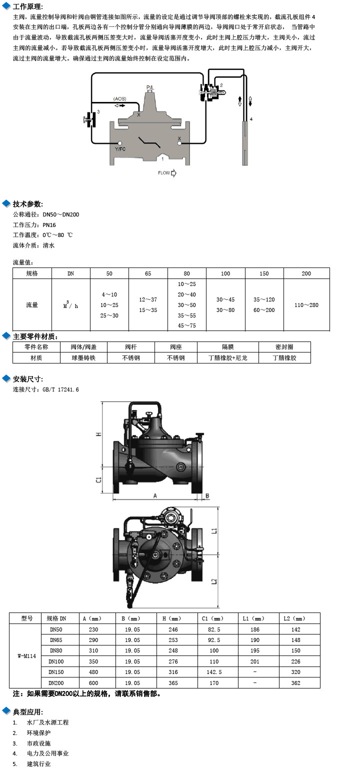 W-M114-DN50,W-M114-DN65,W-M114-DN80,W-M114-DN100,W-M114-DN125,水力控制閥