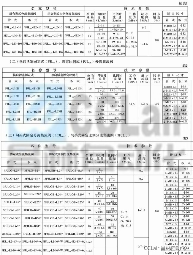 FJLG-B10H,FJLG-B15H,FJLG-B20H,FJLG-B25H,FJLG-B32H,換向活塞固定式分流集流閥