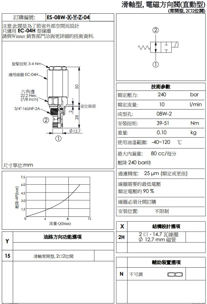 詳細(xì)信息 ES-08W-2H-14-N-04,ES-08W-2H-15-N-04,winner滑軸型電磁方向閥