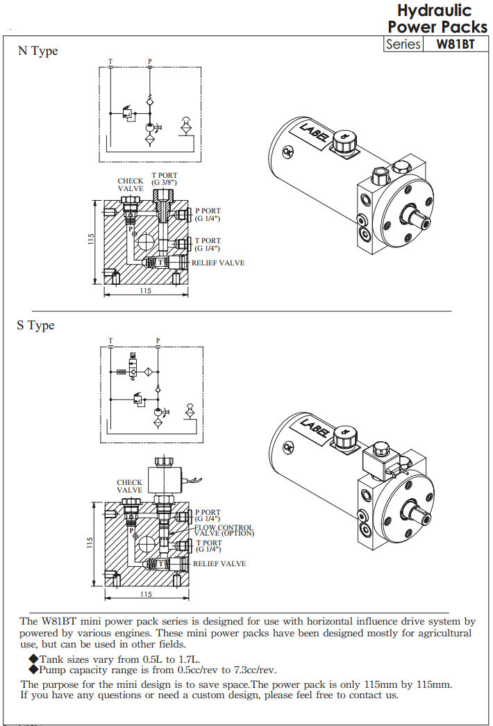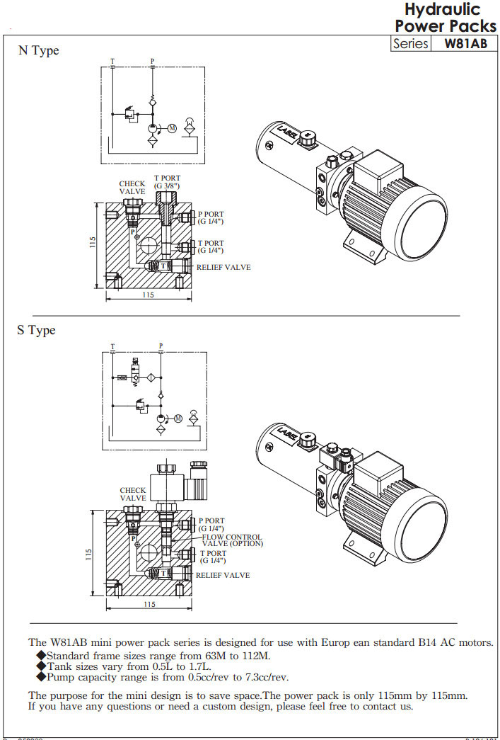 W81A,W81AB,W81BT,W81D,winner小型油壓動力單元
