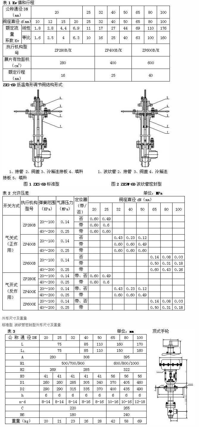 適用流體溫度-60℃~-250℃范圍內多種檔次,泄漏量等級有IV和VI兩種,流量特性為線性或等百分比。多種多