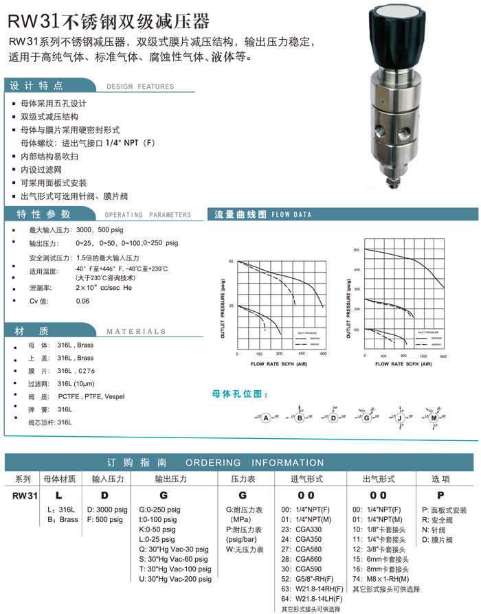 RW31LDGG,RW31LFGG,RW31BDGG,RW31BFGG,RW31LDGP,RW31LFGP,RW31BDGP,RW31BFGP,不銹鋼雙級減壓器