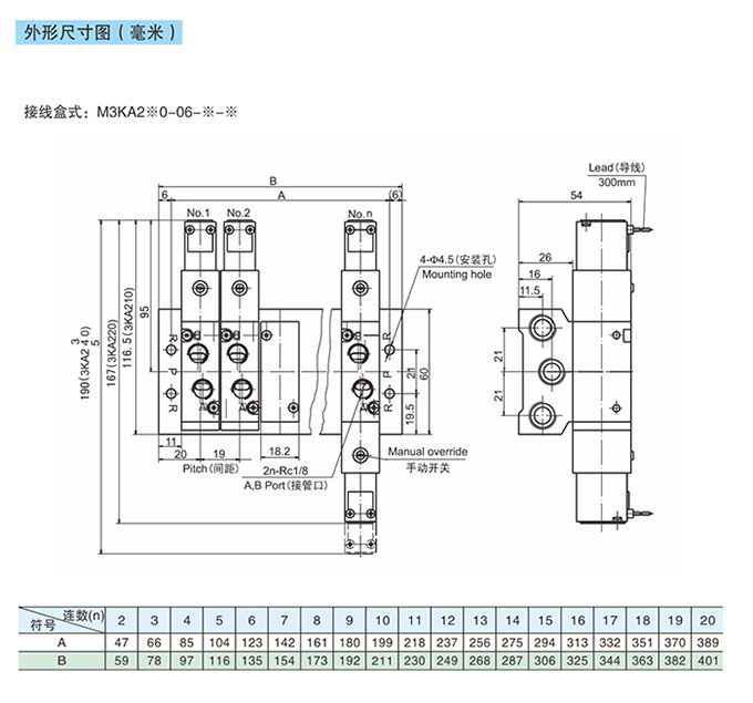 M3KA210-06,M3KA220-06,M3KA230-06,M3KA240-06,M3KA250-06,M3KA280-06,M3KA210-06-B,先導式五通匯流板型電磁閥
