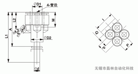 | MODEL | 管徑 | φd | φD1 | φD2 | L1 | L2 | I | Q | A | P | M | CT(mm2) | 重量(g) |