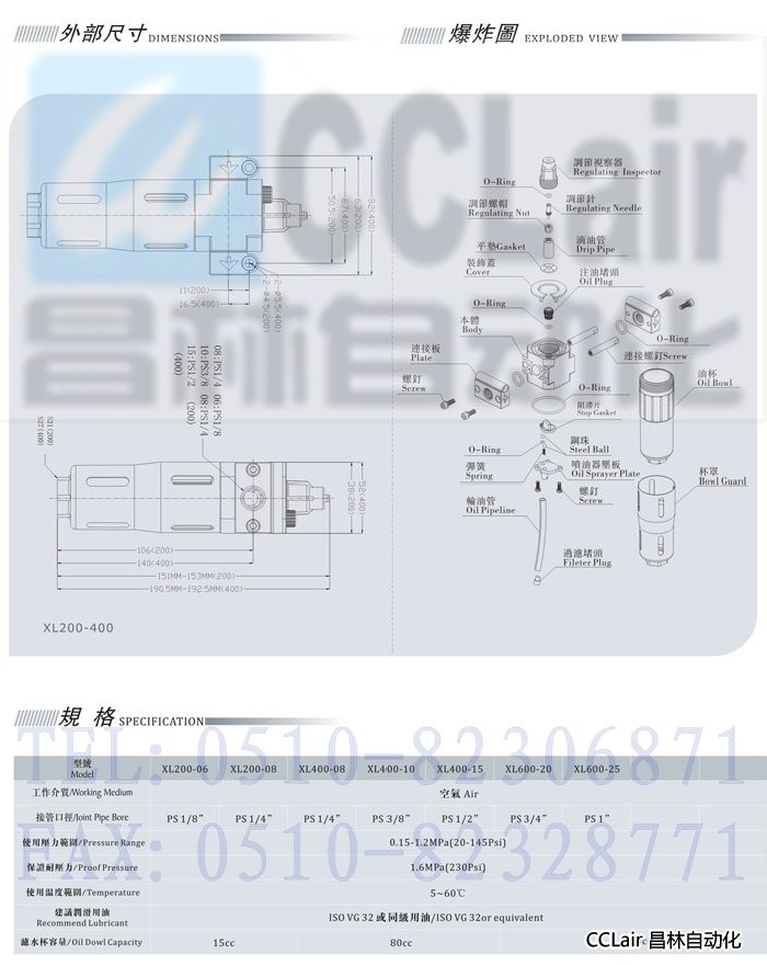XL200-06,XL200-08,XL400-08,XL400-10,XL400-15,XL600-20,XL600-25,給油器