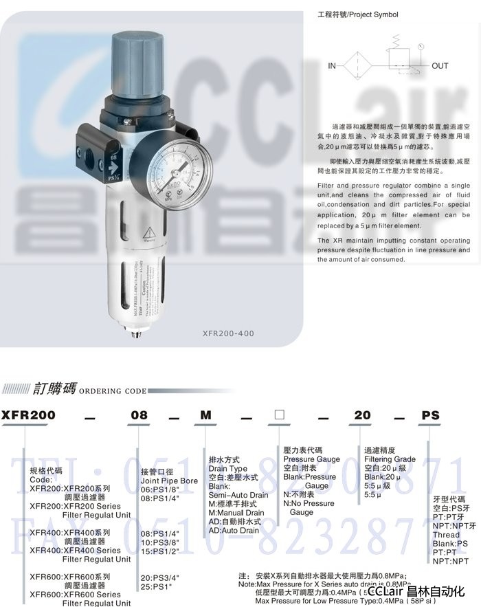 XFR200-06,XFR200-08,XFR400-08,XFR400-10,XFR400-15,XFR600-20,XFR600-25,調(diào)壓過濾器